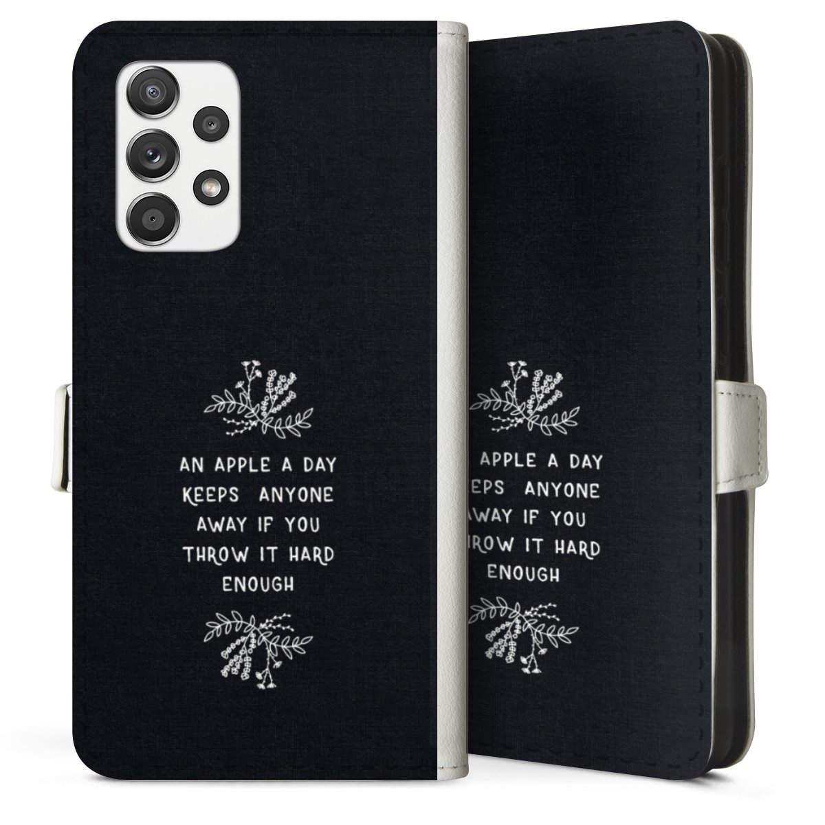 For our Sideflip Case we are using our advanced direct printing technology. The back and frontside are fully printabale, the inside of the phone bag is left unprinted. You can order the phone case without print, printed completely or also with a partial print.