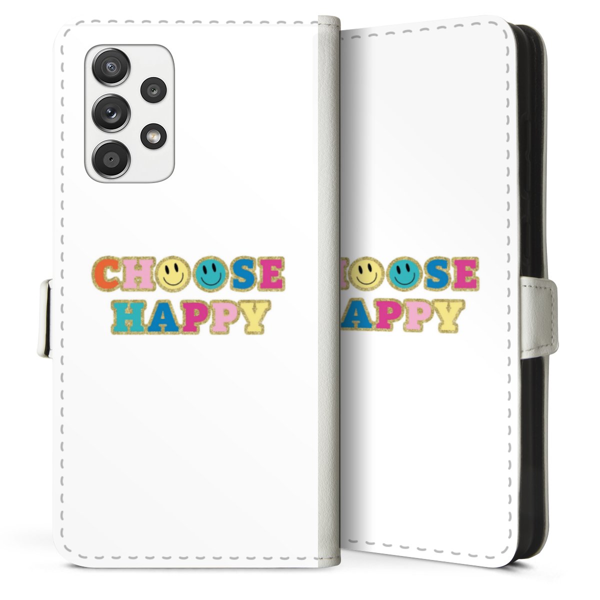 For our Sideflip Case we are using our advanced direct printing technology. The back and frontside are fully printabale, the inside of the phone bag is left unprinted. You can order the phone case without print, printed completely or also with a partial print.
