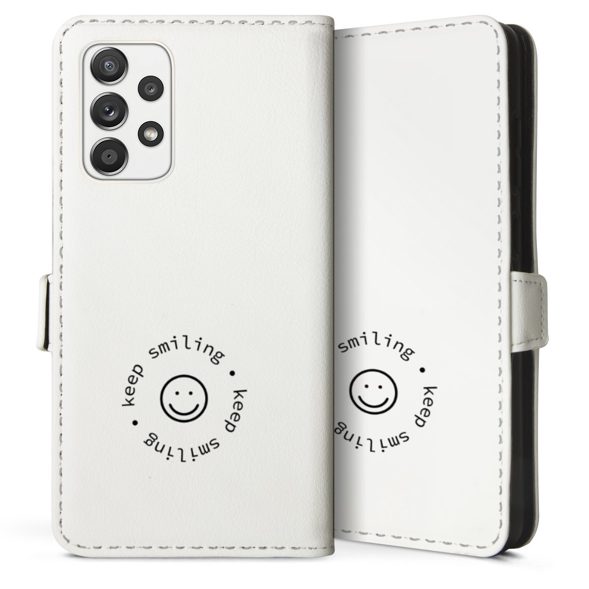 For our Sideflip Case we are using our advanced direct printing technology. The back and frontside are fully printabale, the inside of the phone bag is left unprinted. You can order the phone case without print, printed completely or also with a partial print.