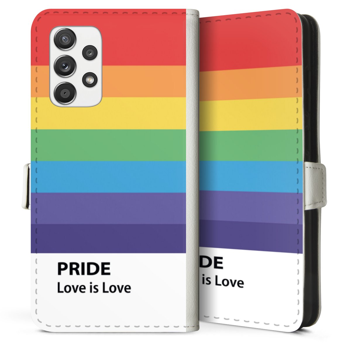 For our Sideflip Case we are using our advanced direct printing technology. The back and frontside are fully printabale, the inside of the phone bag is left unprinted. You can order the phone case without print, printed completely or also with a partial print.