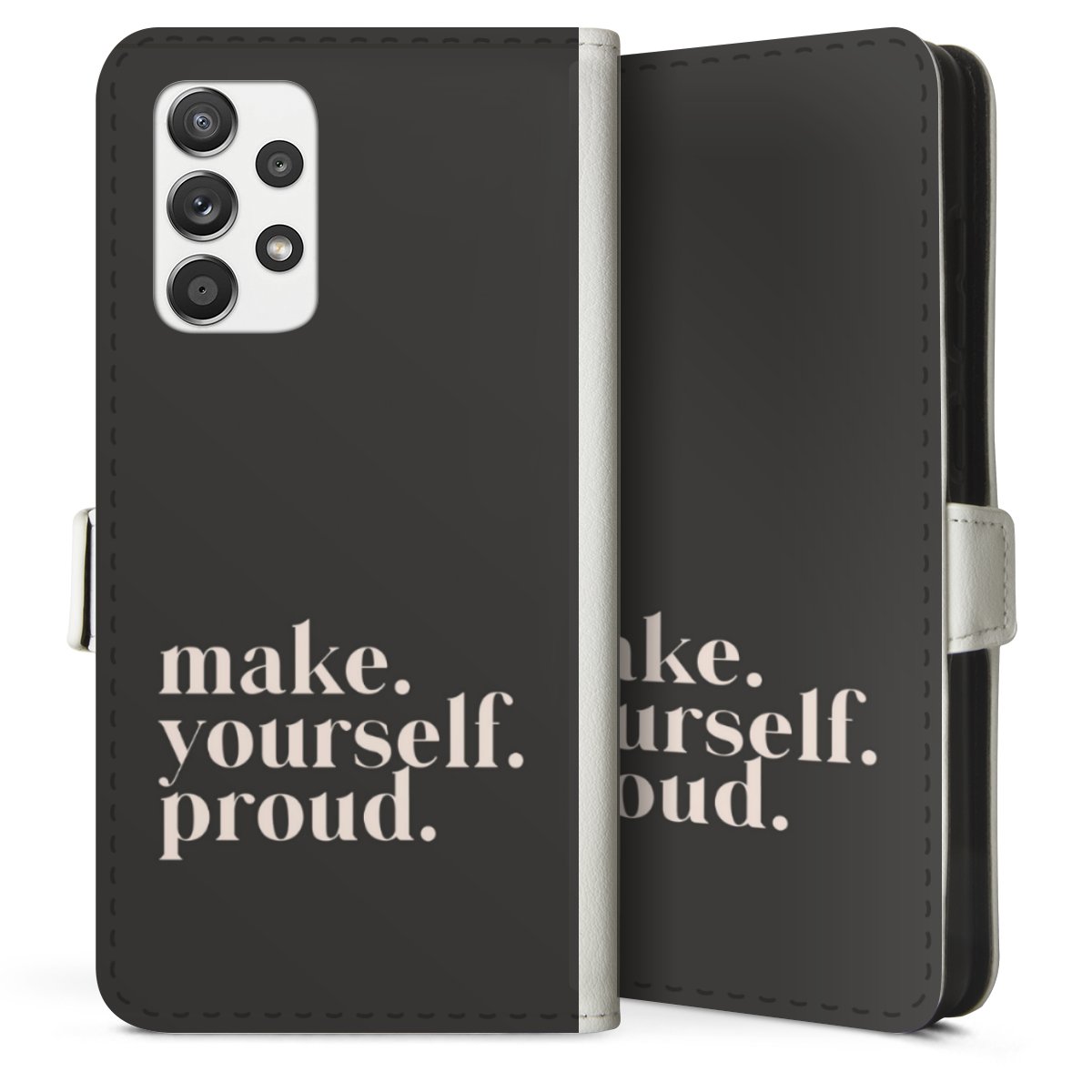 For our Sideflip Case we are using our advanced direct printing technology. The back and frontside are fully printabale, the inside of the phone bag is left unprinted. You can order the phone case without print, printed completely or also with a partial print.