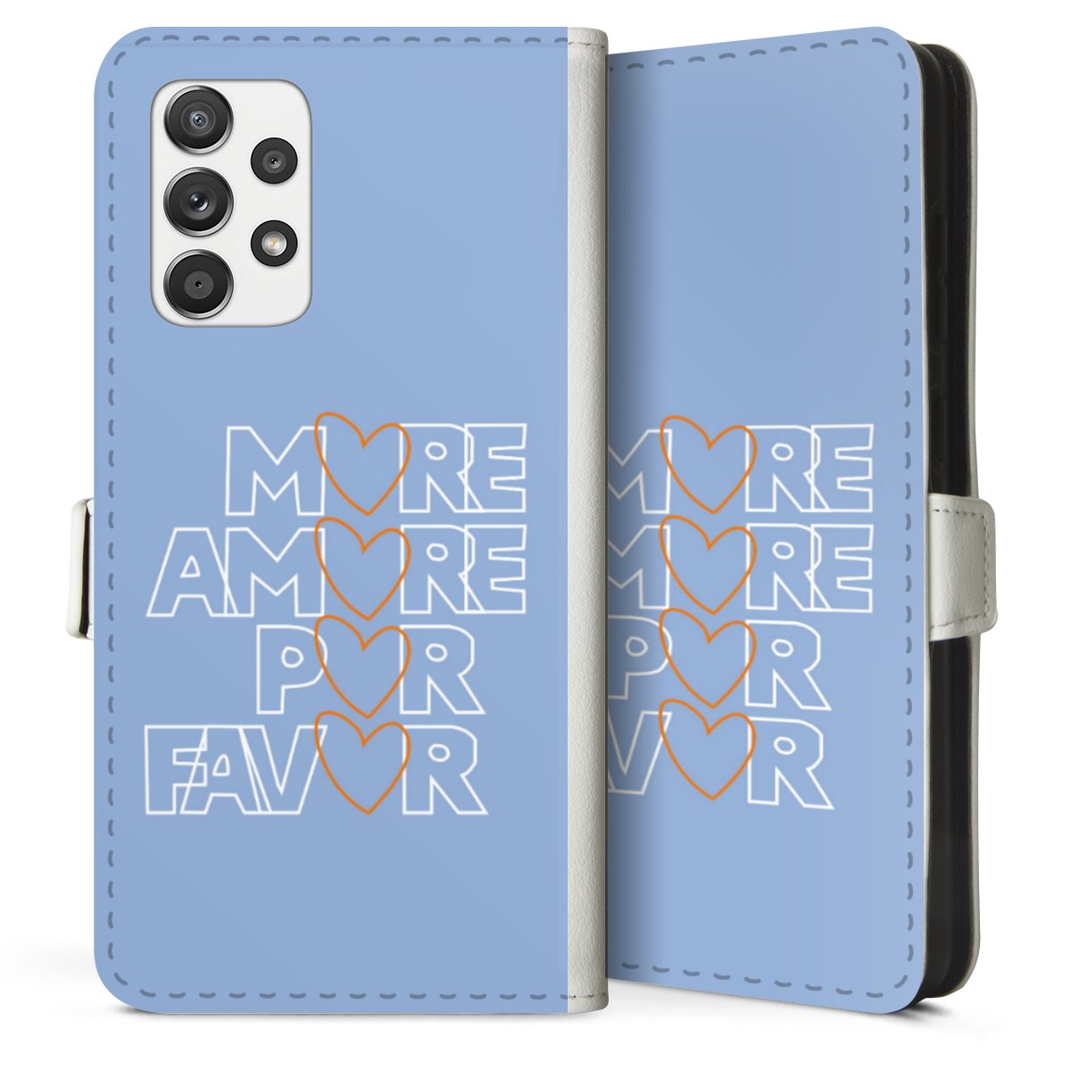 For our Sideflip Case we are using our advanced direct printing technology. The back and frontside are fully printabale, the inside of the phone bag is left unprinted. You can order the phone case without print, printed completely or also with a partial print.