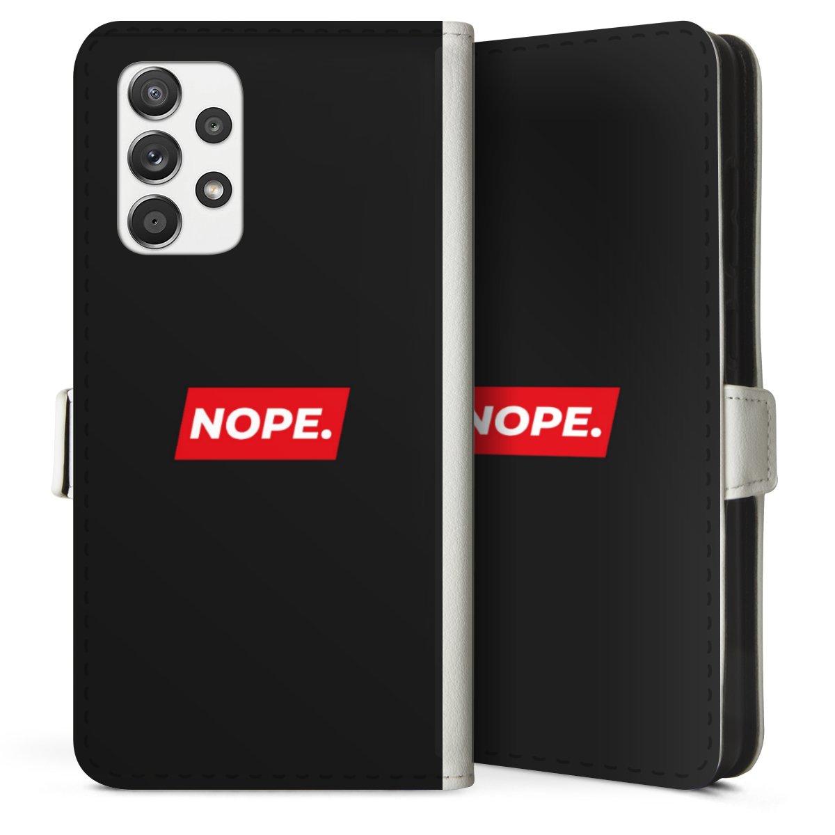 For our Sideflip Case we are using our advanced direct printing technology. The back and frontside are fully printabale, the inside of the phone bag is left unprinted. You can order the phone case without print, printed completely or also with a partial print.