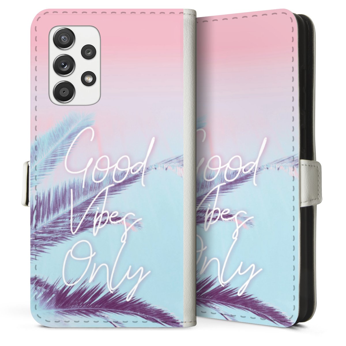 For our Sideflip Case we are using our advanced direct printing technology. The back and frontside are fully printabale, the inside of the phone bag is left unprinted. You can order the phone case without print, printed completely or also with a partial print.