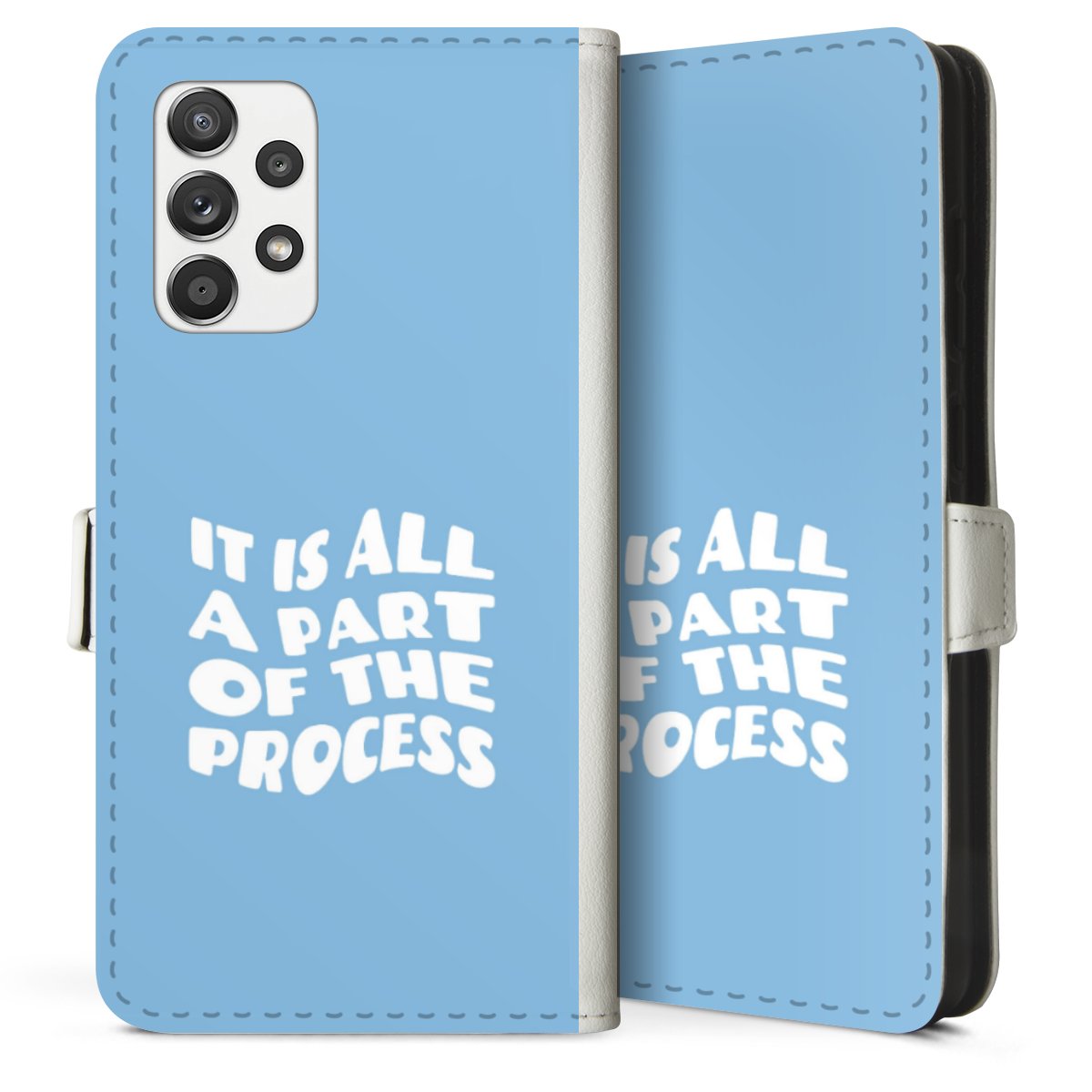 For our Sideflip Case we are using our advanced direct printing technology. The back and frontside are fully printabale, the inside of the phone bag is left unprinted. You can order the phone case without print, printed completely or also with a partial print.