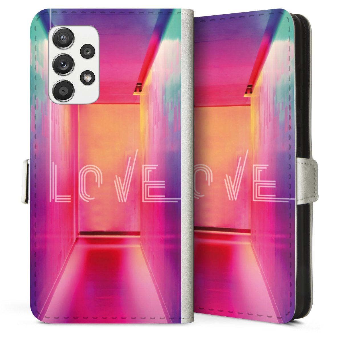 For our Sideflip Case we are using our advanced direct printing technology. The back and frontside are fully printabale, the inside of the phone bag is left unprinted. You can order the phone case without print, printed completely or also with a partial print.