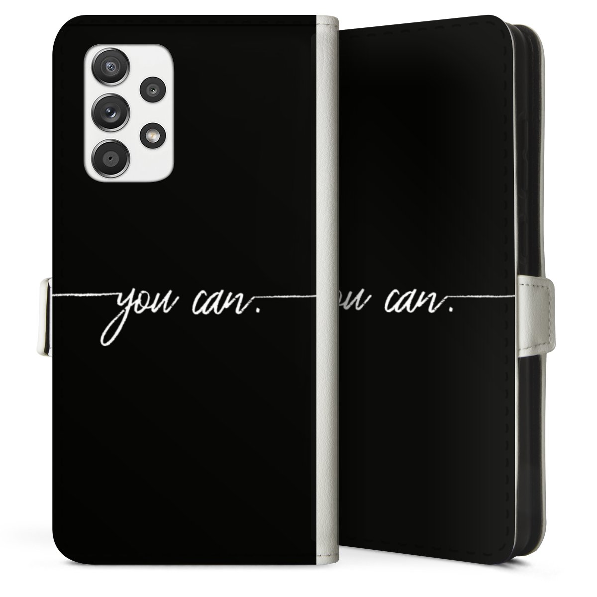 For our Sideflip Case we are using our advanced direct printing technology. The back and frontside are fully printabale, the inside of the phone bag is left unprinted. You can order the phone case without print, printed completely or also with a partial print.