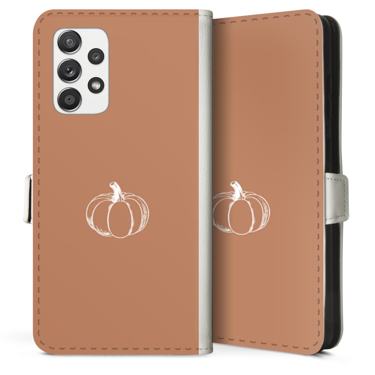 For our Sideflip Case we are using our advanced direct printing technology. The back and frontside are fully printabale, the inside of the phone bag is left unprinted. You can order the phone case without print, printed completely or also with a partial print.