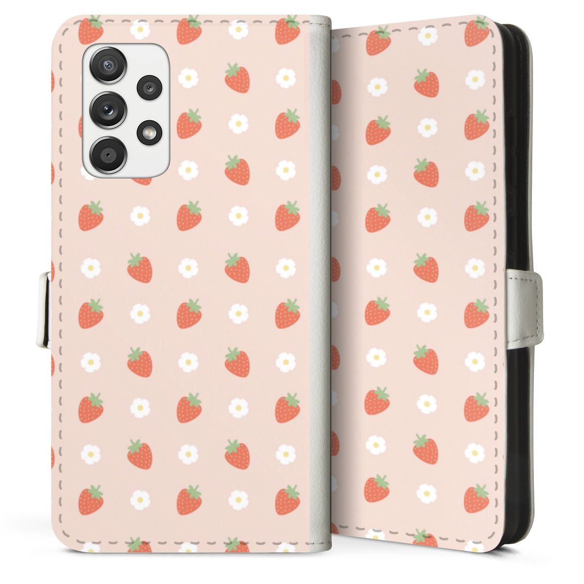 For our Sideflip Case we are using our advanced direct printing technology. The back and frontside are fully printabale, the inside of the phone bag is left unprinted. You can order the phone case without print, printed completely or also with a partial print.