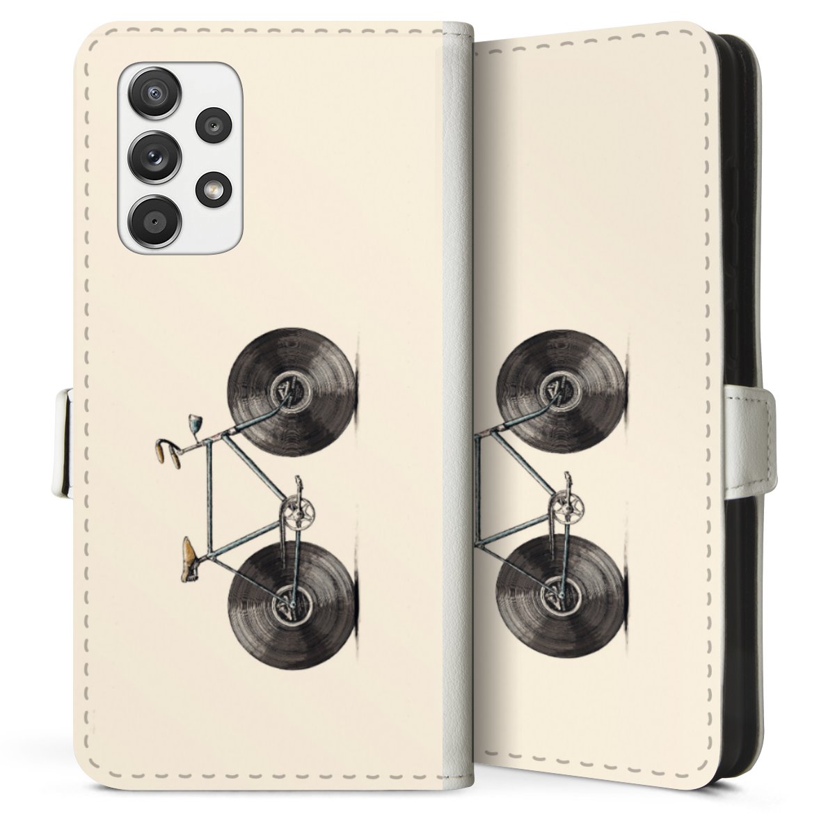 For our Sideflip Case we are using our advanced direct printing technology. The back and frontside are fully printabale, the inside of the phone bag is left unprinted. You can order the phone case without print, printed completely or also with a partial print.