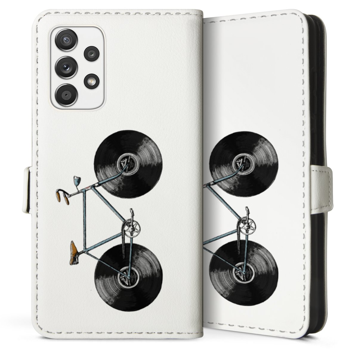 For our Sideflip Case we are using our advanced direct printing technology. The back and frontside are fully printabale, the inside of the phone bag is left unprinted. You can order the phone case without print, printed completely or also with a partial print.