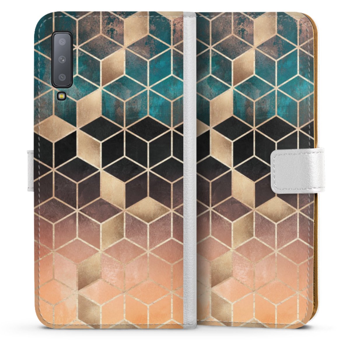 For our Sideflip Case we are using our advanced direct printing technology. The back and frontside are fully printabale, the inside of the phone bag is left unprinted. You can order the phone case without print, printed completely or also with a partial print.