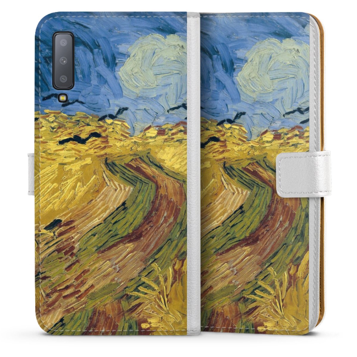 For our Sideflip Case we are using our advanced direct printing technology. The back and frontside are fully printabale, the inside of the phone bag is left unprinted. You can order the phone case without print, printed completely or also with a partial print.