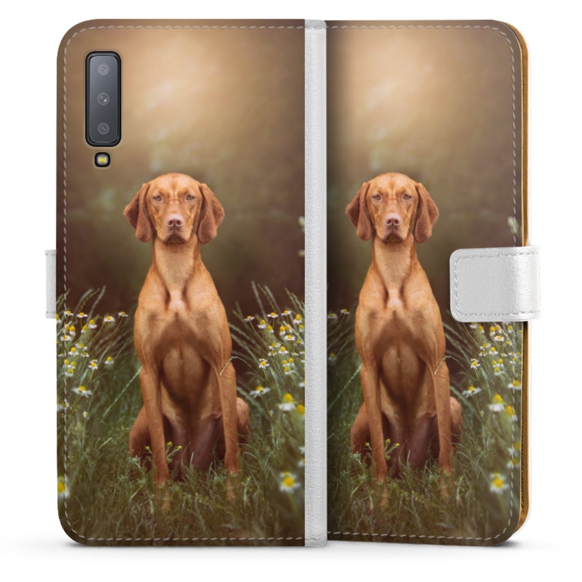 For our Sideflip Case we are using our advanced direct printing technology. The back and frontside are fully printabale, the inside of the phone bag is left unprinted. You can order the phone case without print, printed completely or also with a partial print.