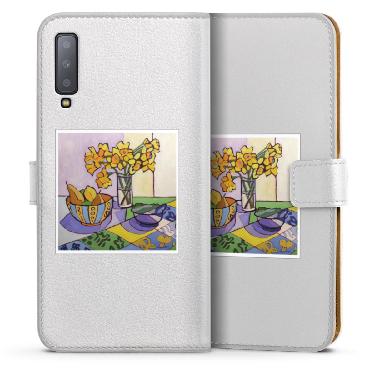 For our Sideflip Case we are using our advanced direct printing technology. The back and frontside are fully printabale, the inside of the phone bag is left unprinted. You can order the phone case without print, printed completely or also with a partial print.