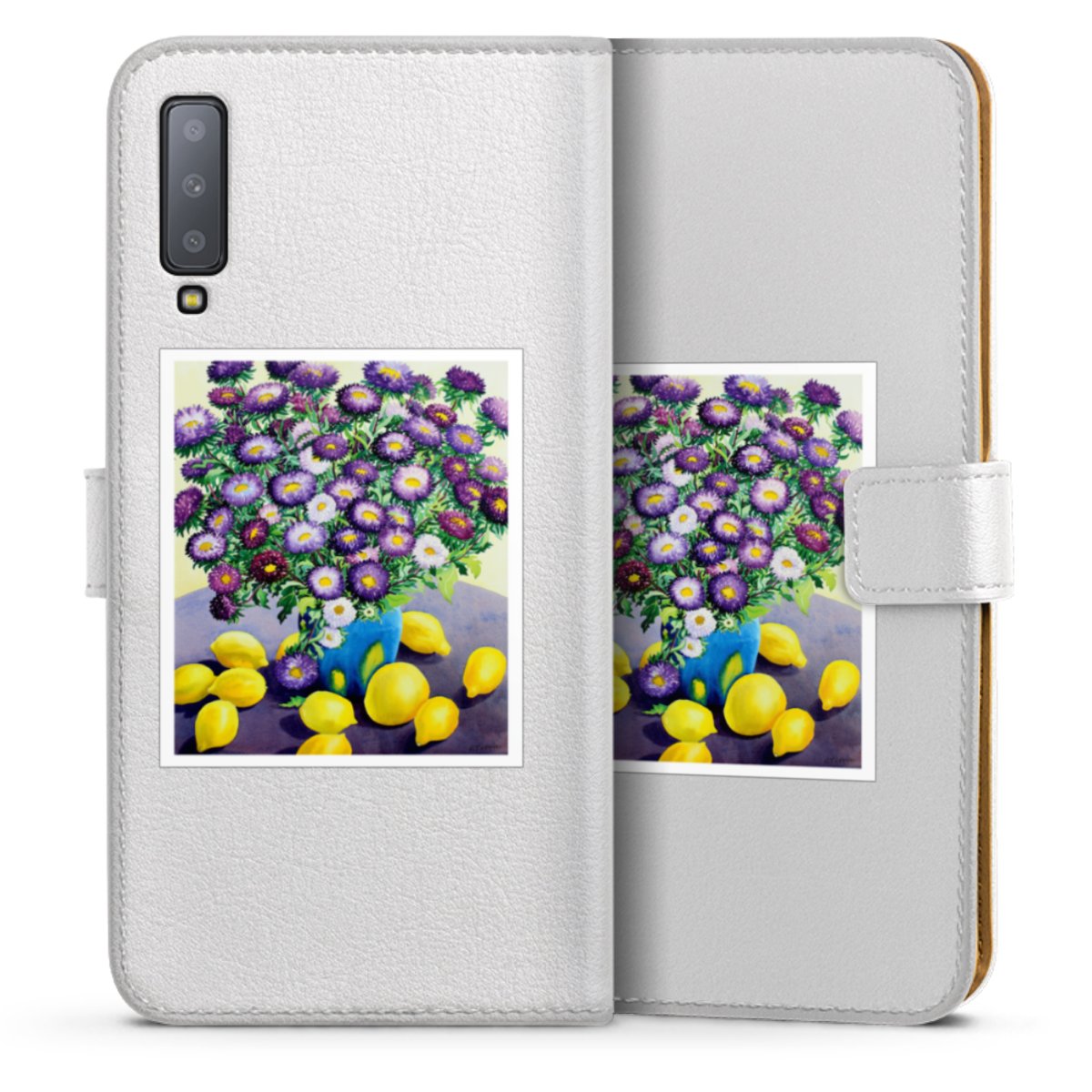 For our Sideflip Case we are using our advanced direct printing technology. The back and frontside are fully printabale, the inside of the phone bag is left unprinted. You can order the phone case without print, printed completely or also with a partial print.