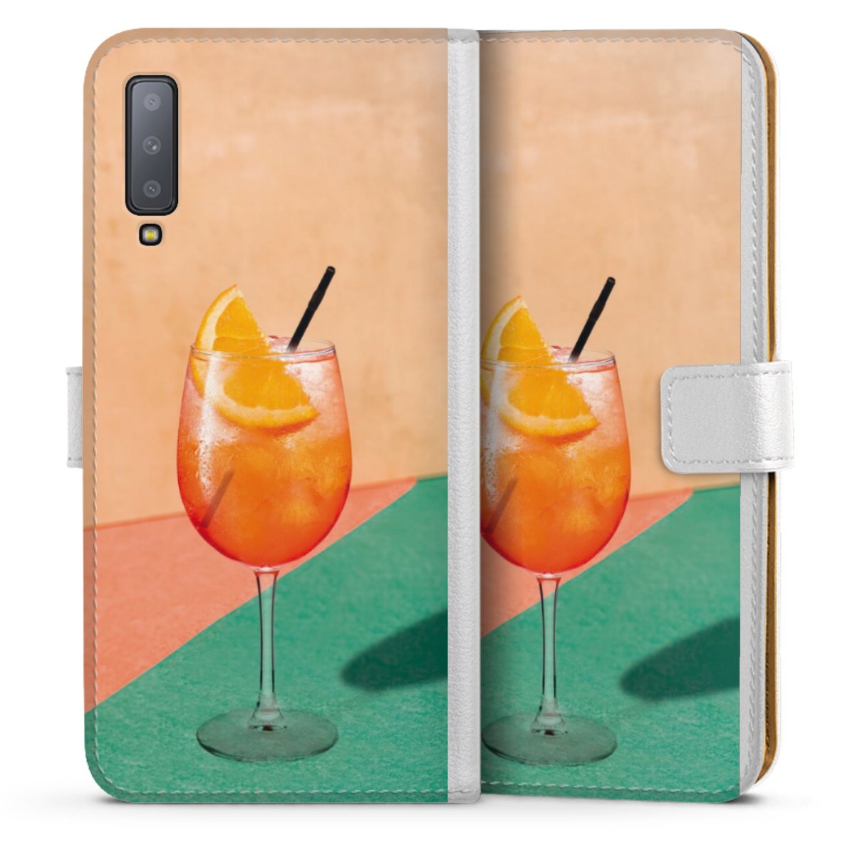 For our Sideflip Case we are using our advanced direct printing technology. The back and frontside are fully printabale, the inside of the phone bag is left unprinted. You can order the phone case without print, printed completely or also with a partial print.