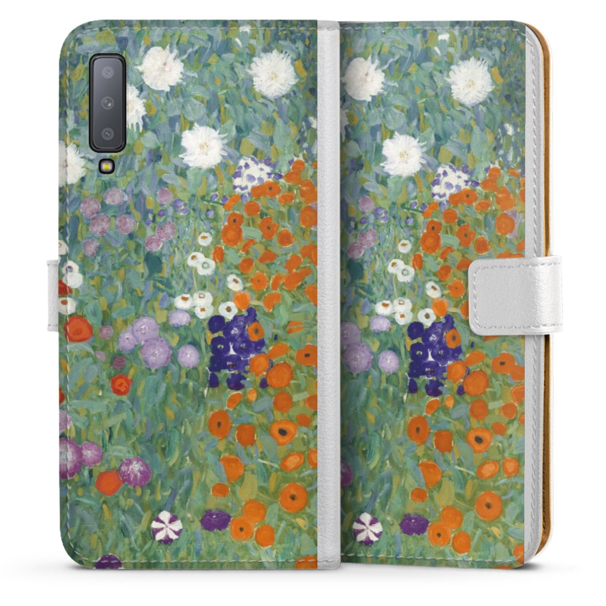 For our Sideflip Case we are using our advanced direct printing technology. The back and frontside are fully printabale, the inside of the phone bag is left unprinted. You can order the phone case without print, printed completely or also with a partial print.