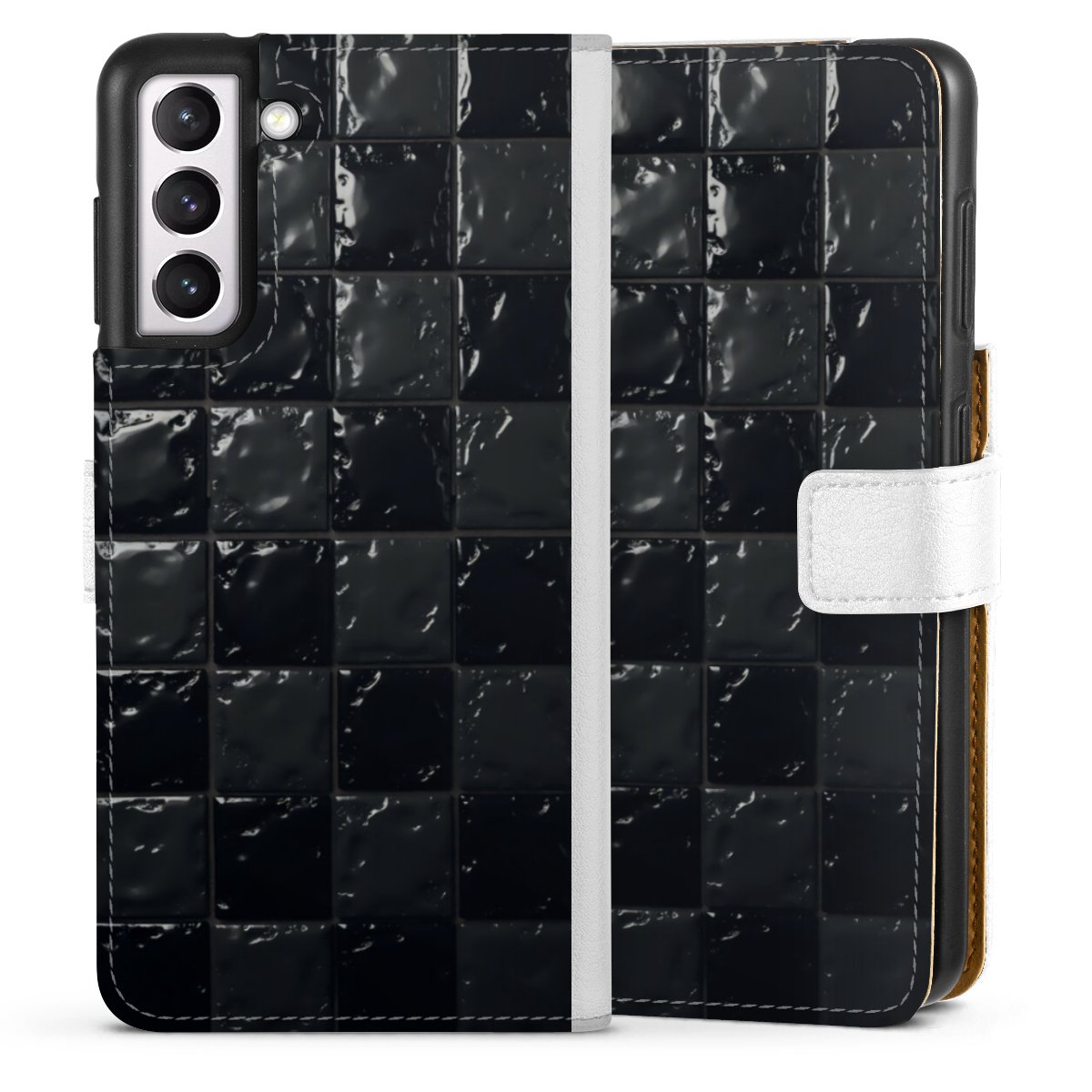 For our Sideflip Case we are using our advanced direct printing technology. The back and frontside are fully printabale, the inside of the phone bag is left unprinted. You can order the phone case without print, printed completely or also with a partial print.