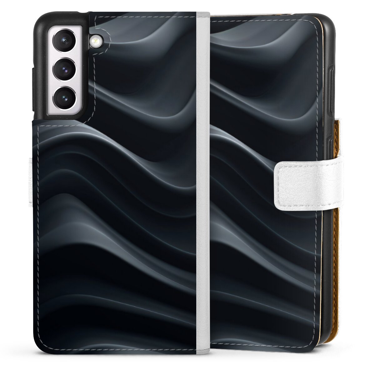 For our Sideflip Case we are using our advanced direct printing technology. The back and frontside are fully printabale, the inside of the phone bag is left unprinted. You can order the phone case without print, printed completely or also with a partial print.