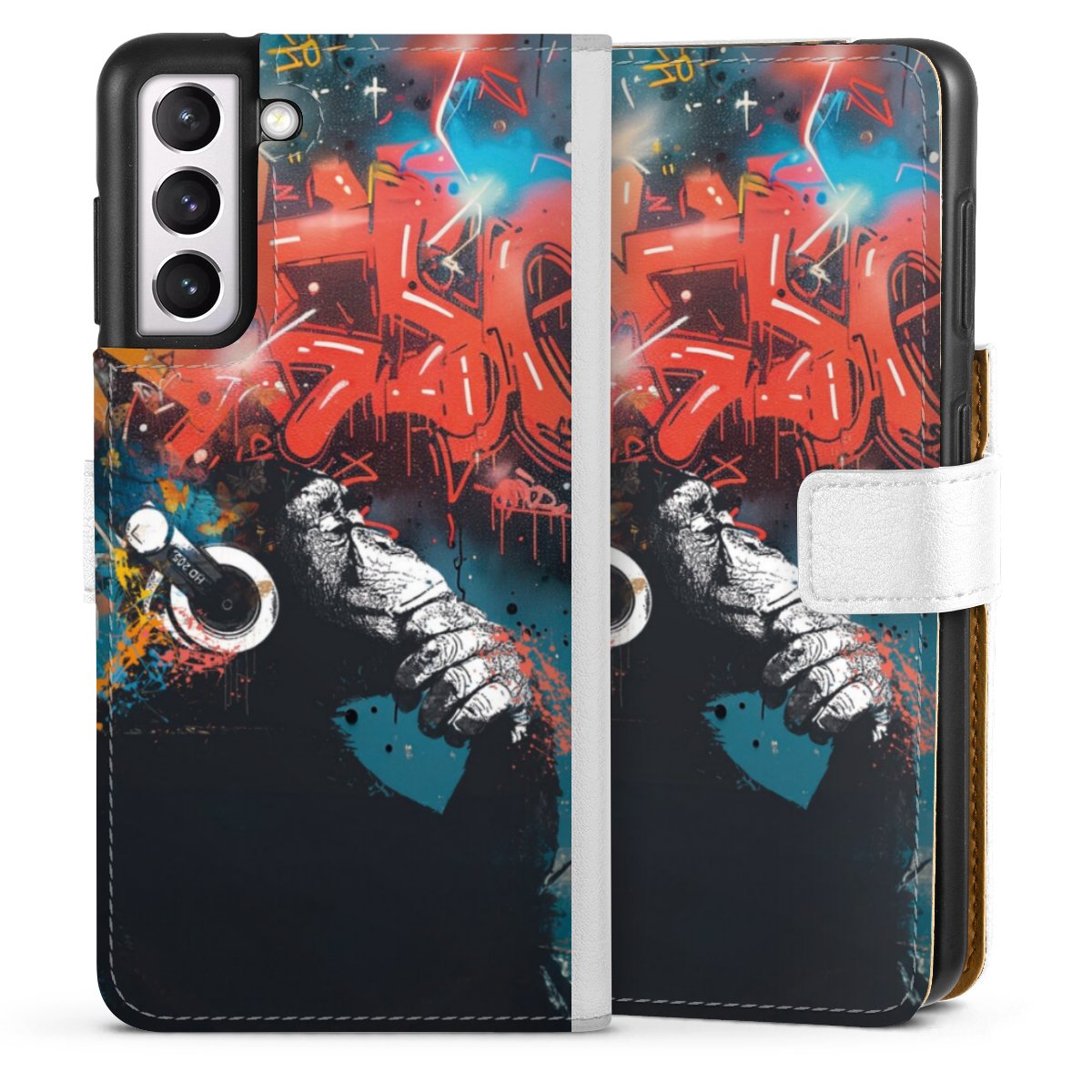 For our Sideflip Case we are using our advanced direct printing technology. The back and frontside are fully printabale, the inside of the phone bag is left unprinted. You can order the phone case without print, printed completely or also with a partial print.