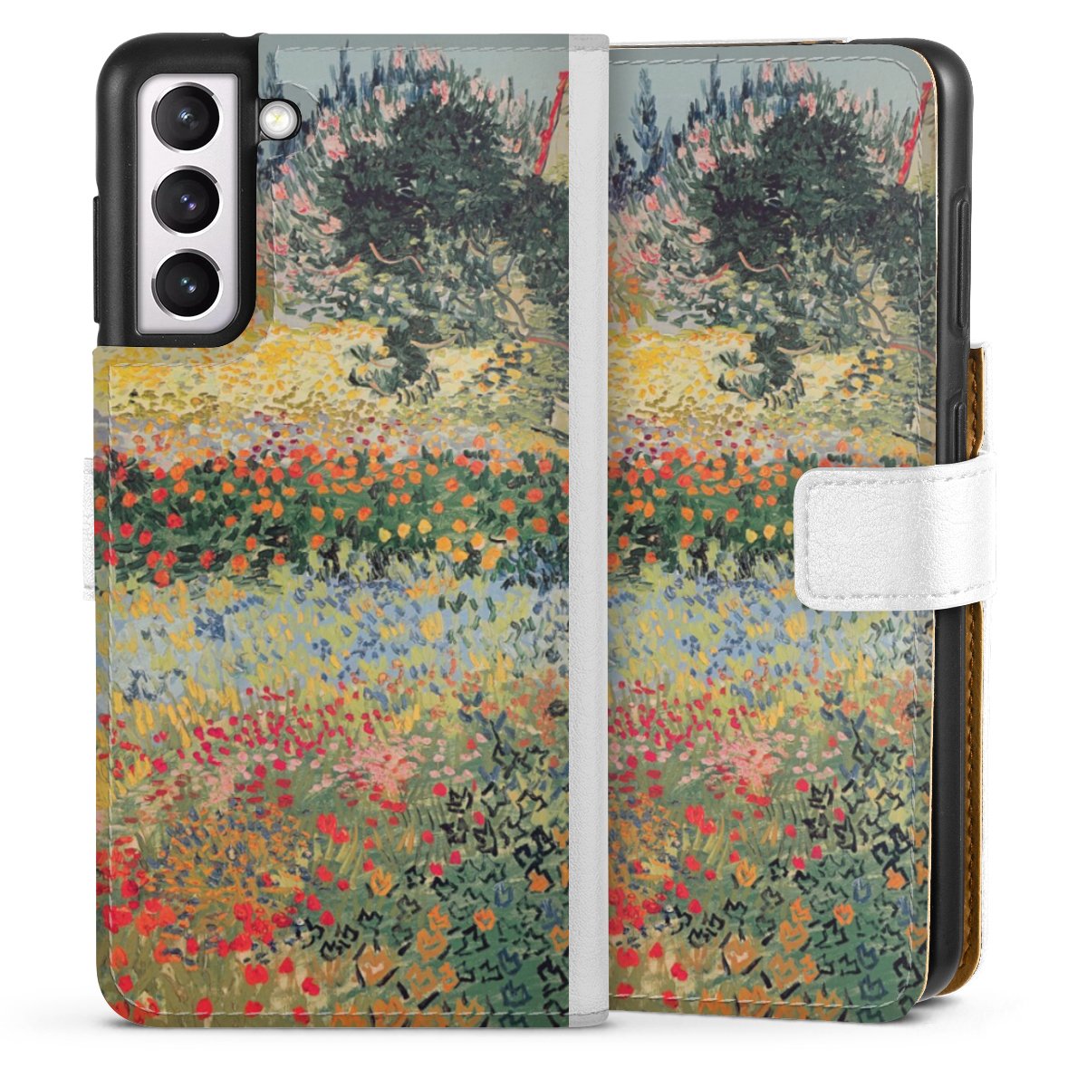 For our Sideflip Case we are using our advanced direct printing technology. The back and frontside are fully printabale, the inside of the phone bag is left unprinted. You can order the phone case without print, printed completely or also with a partial print.