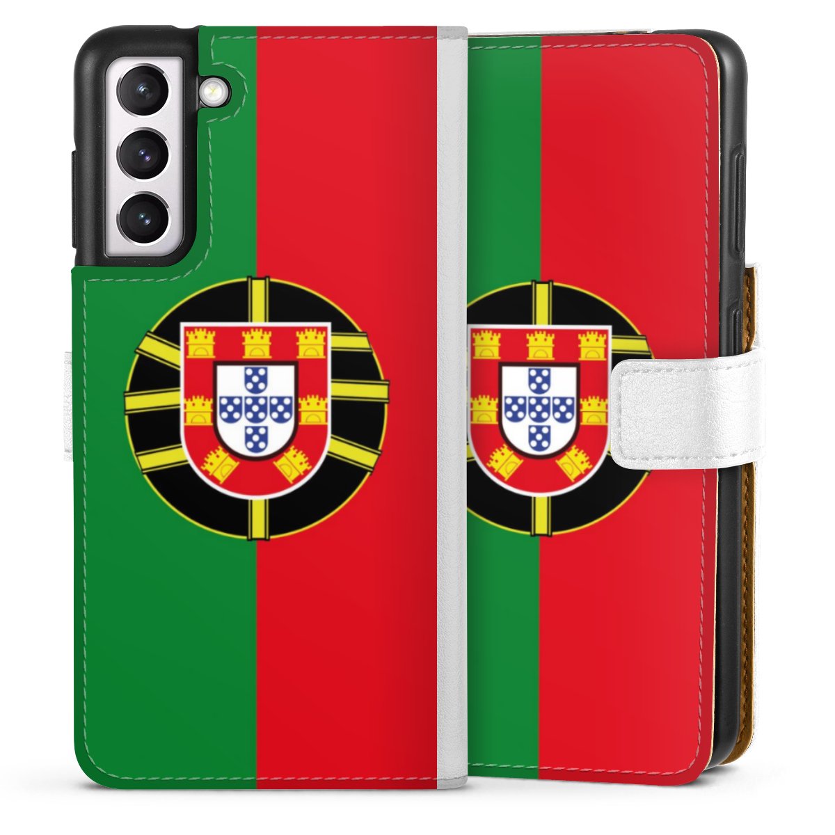 For our Sideflip Case we are using our advanced direct printing technology. The back and frontside are fully printabale, the inside of the phone bag is left unprinted. You can order the phone case without print, printed completely or also with a partial print.