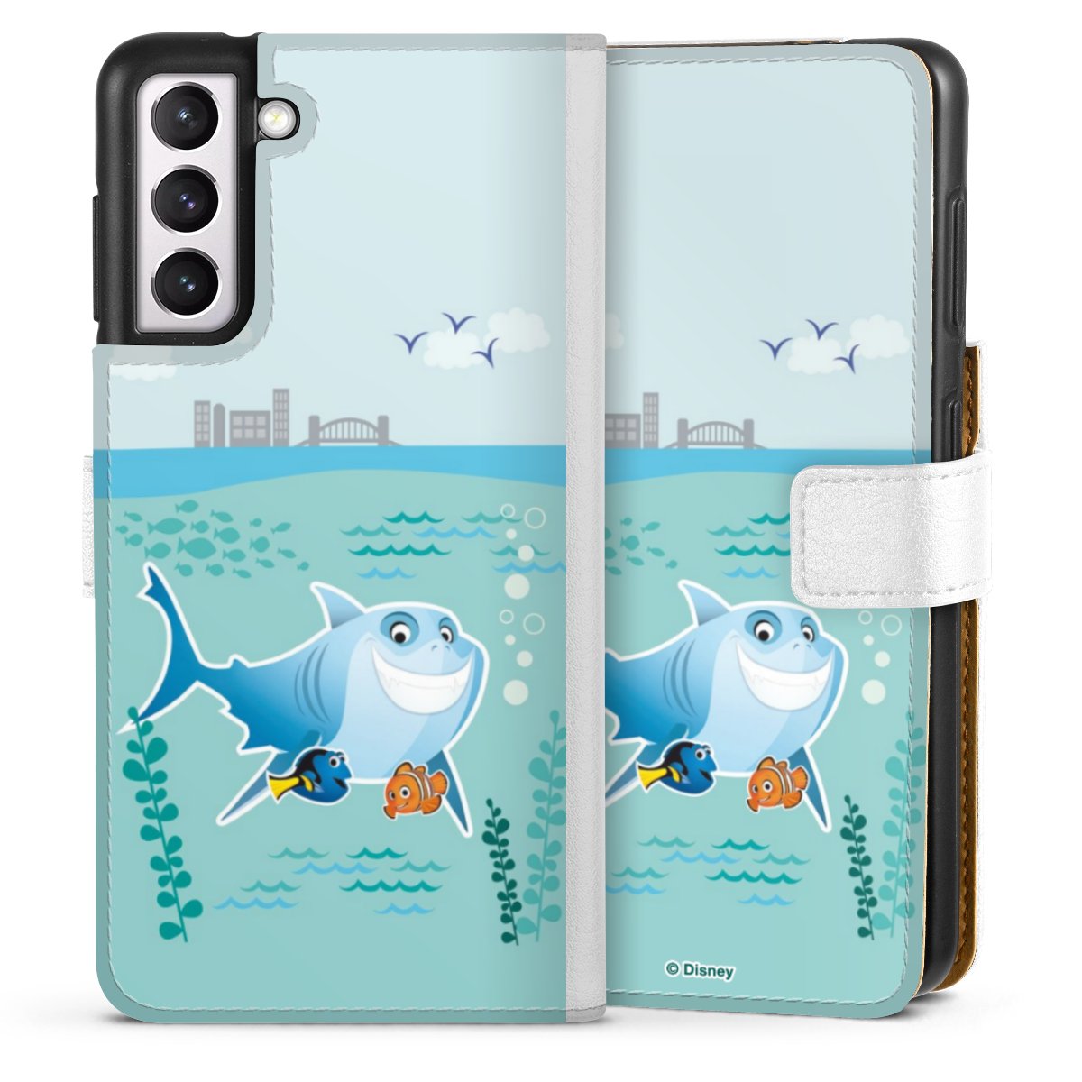 For our Sideflip Case we are using our advanced direct printing technology. The back and frontside are fully printabale, the inside of the phone bag is left unprinted. You can order the phone case without print, printed completely or also with a partial print.