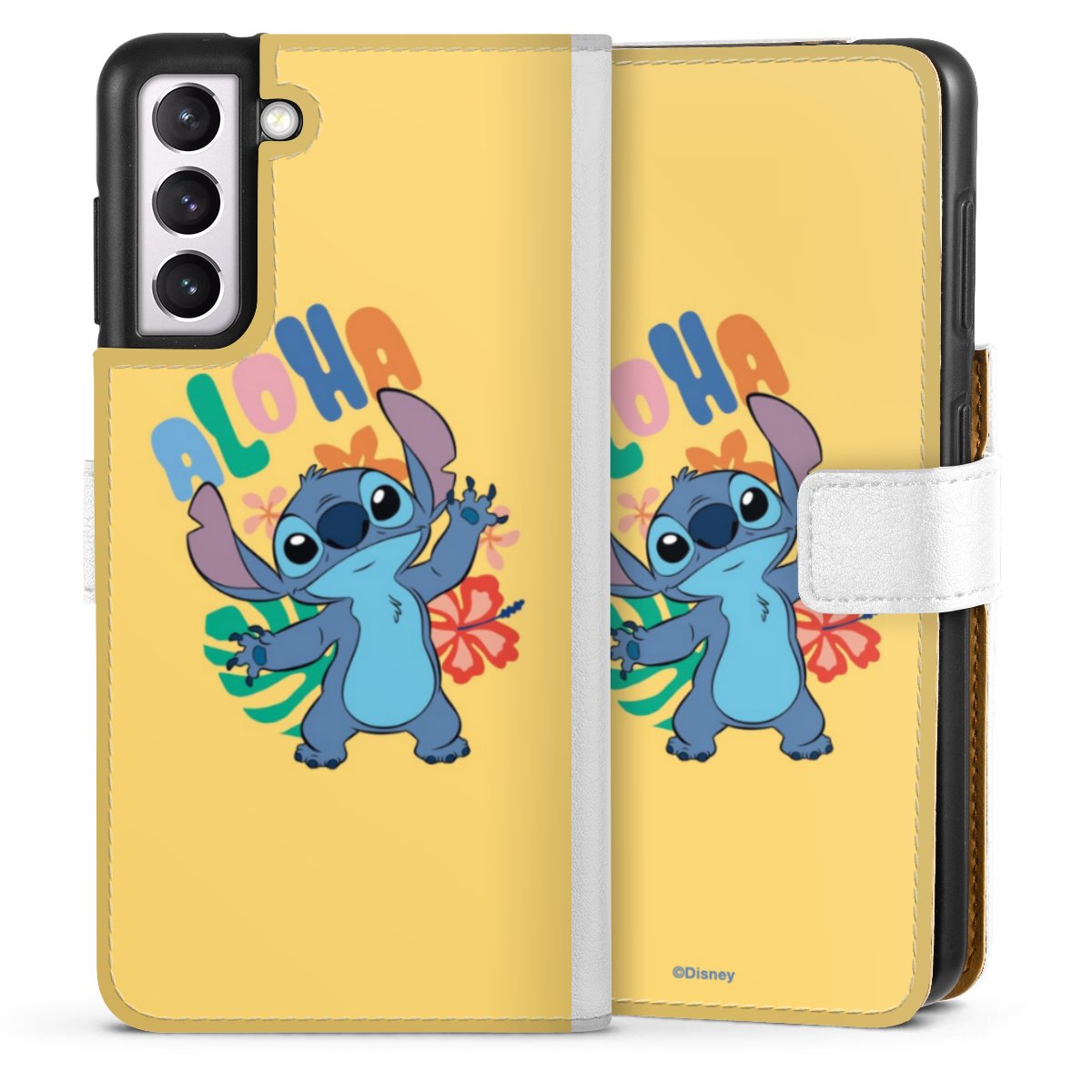 For our Sideflip Case we are using our advanced direct printing technology. The back and frontside are fully printabale, the inside of the phone bag is left unprinted. You can order the phone case without print, printed completely or also with a partial print.