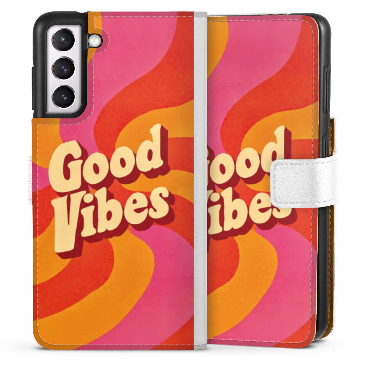 For our Sideflip Case we are using our advanced direct printing technology. The back and frontside are fully printabale, the inside of the phone bag is left unprinted. You can order the phone case without print, printed completely or also with a partial print.