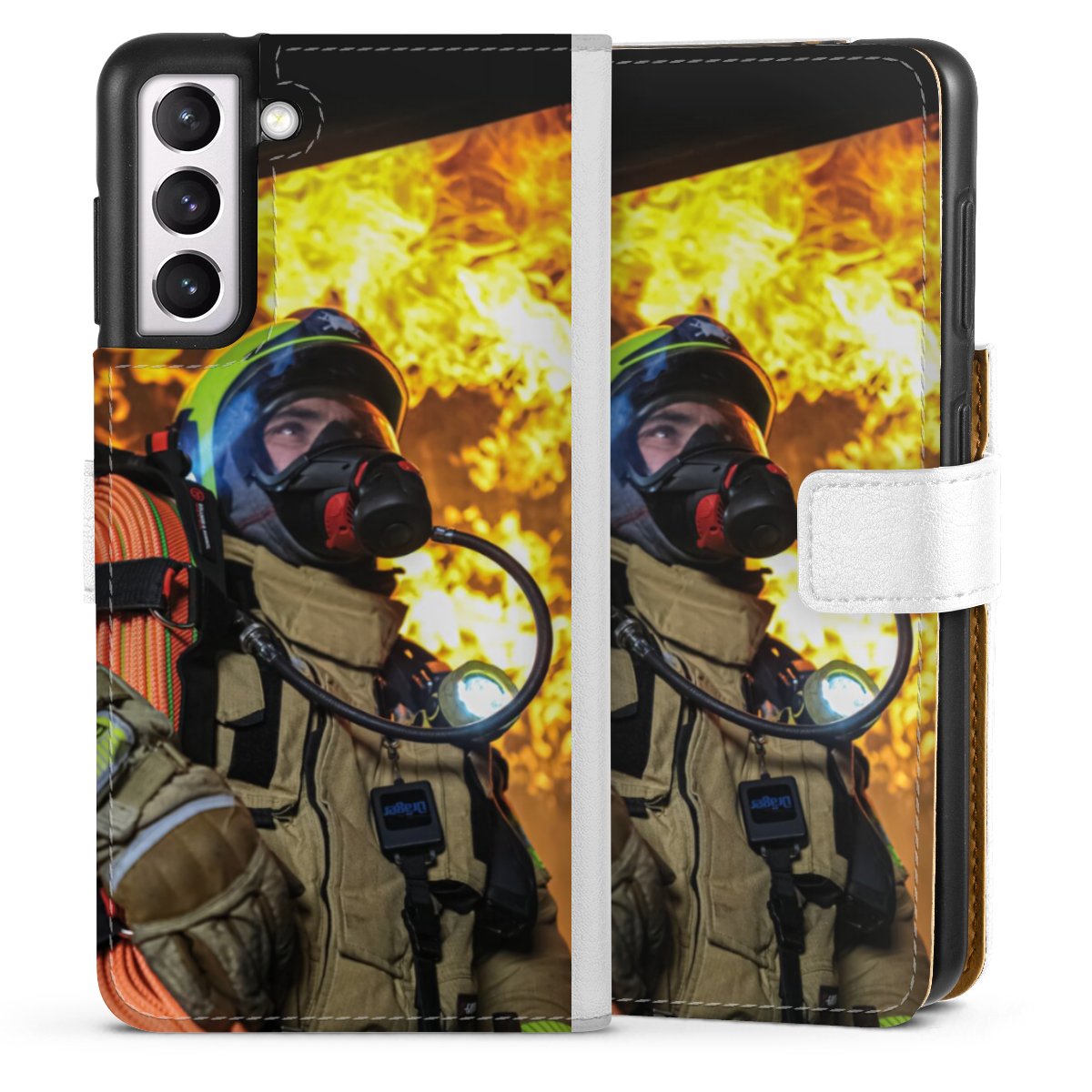 For our Sideflip Case we are using our advanced direct printing technology. The back and frontside are fully printabale, the inside of the phone bag is left unprinted. You can order the phone case without print, printed completely or also with a partial print.