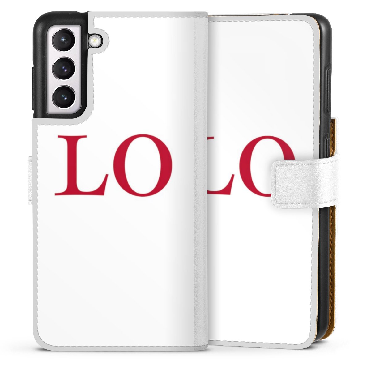 For our Sideflip Case we are using our advanced direct printing technology. The back and frontside are fully printabale, the inside of the phone bag is left unprinted. You can order the phone case without print, printed completely or also with a partial print.