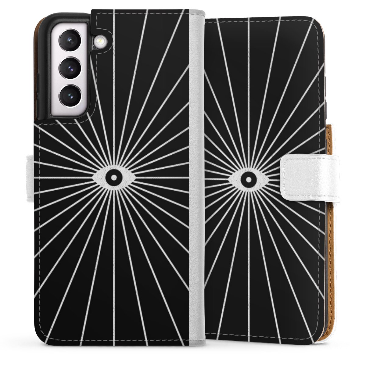 For our Sideflip Case we are using our advanced direct printing technology. The back and frontside are fully printabale, the inside of the phone bag is left unprinted. You can order the phone case without print, printed completely or also with a partial print.