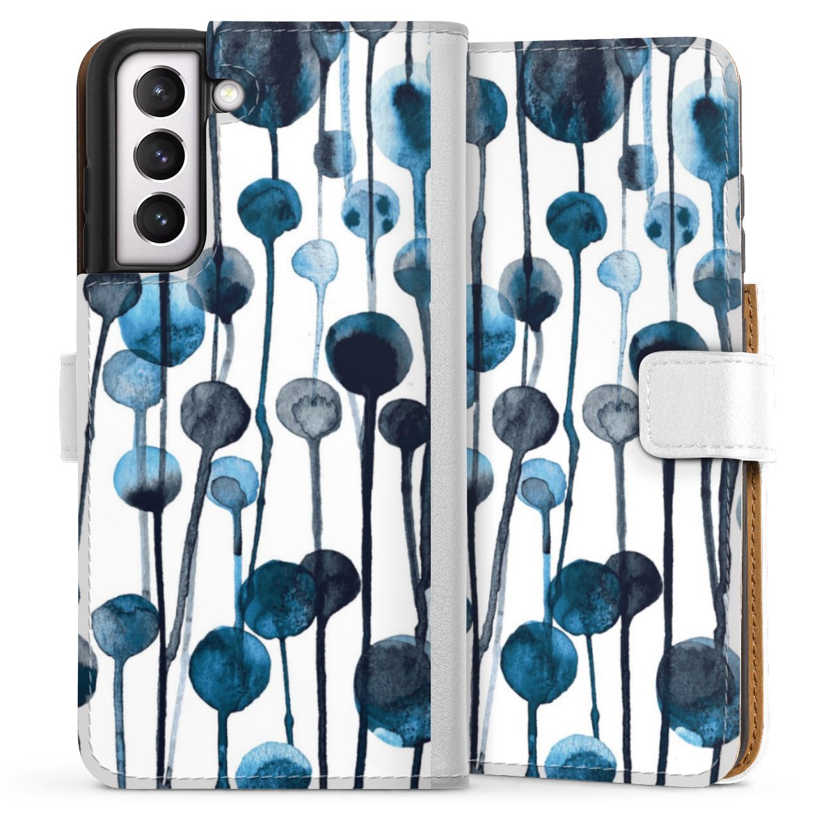 For our Sideflip Case we are using our advanced direct printing technology. The back and frontside are fully printabale, the inside of the phone bag is left unprinted. You can order the phone case without print, printed completely or also with a partial print.