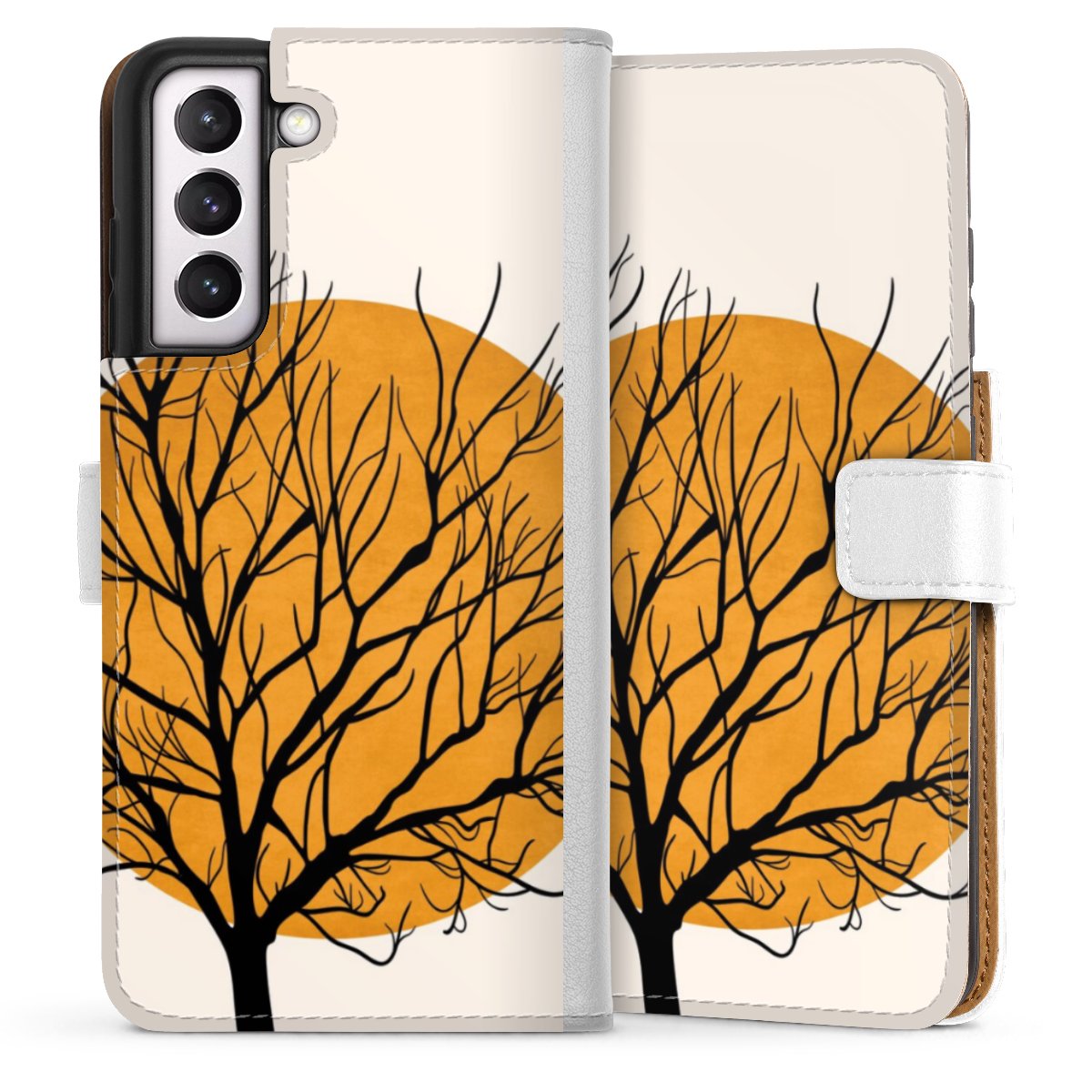 For our Sideflip Case we are using our advanced direct printing technology. The back and frontside are fully printabale, the inside of the phone bag is left unprinted. You can order the phone case without print, printed completely or also with a partial print.