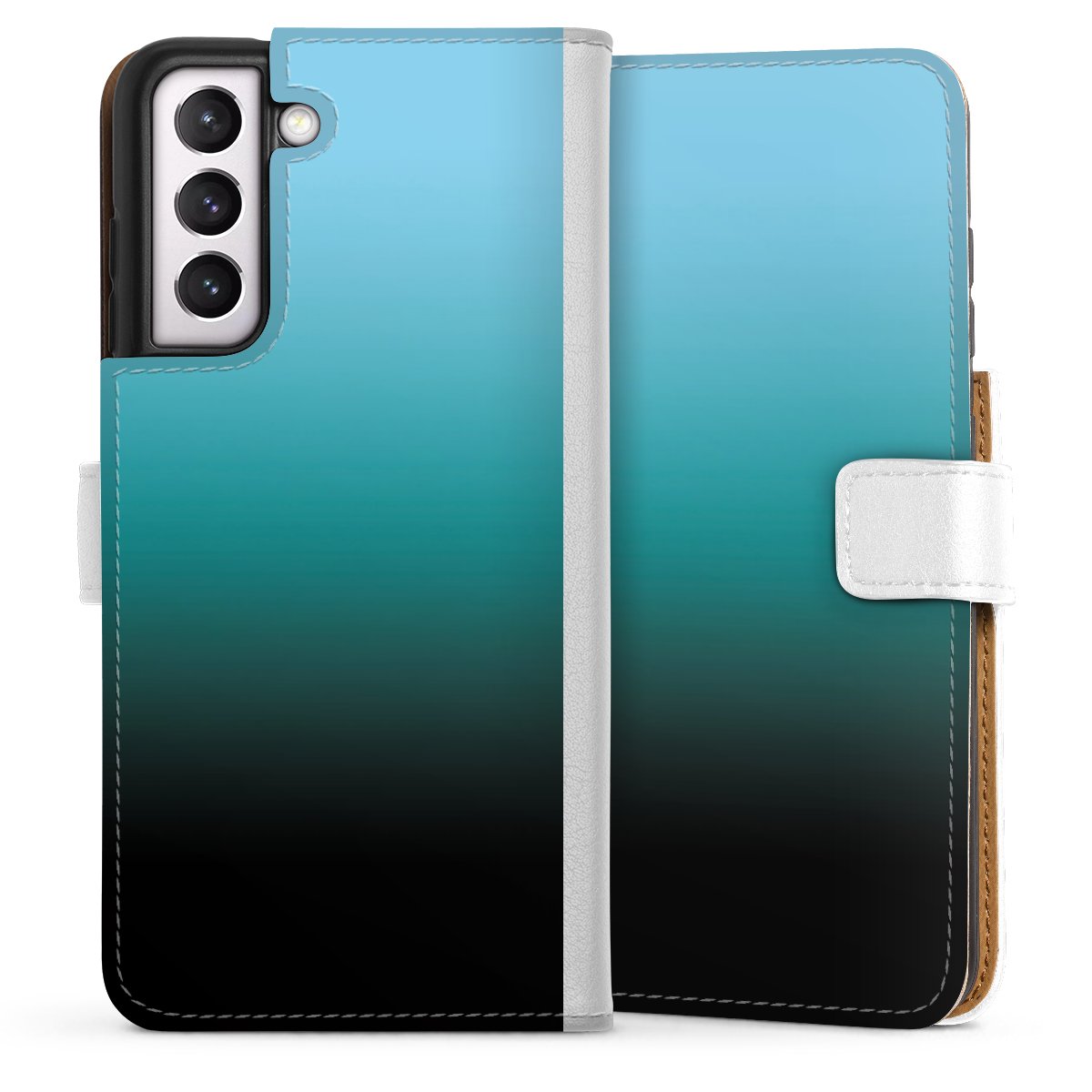 For our Sideflip Case we are using our advanced direct printing technology. The back and frontside are fully printabale, the inside of the phone bag is left unprinted. You can order the phone case without print, printed completely or also with a partial print.