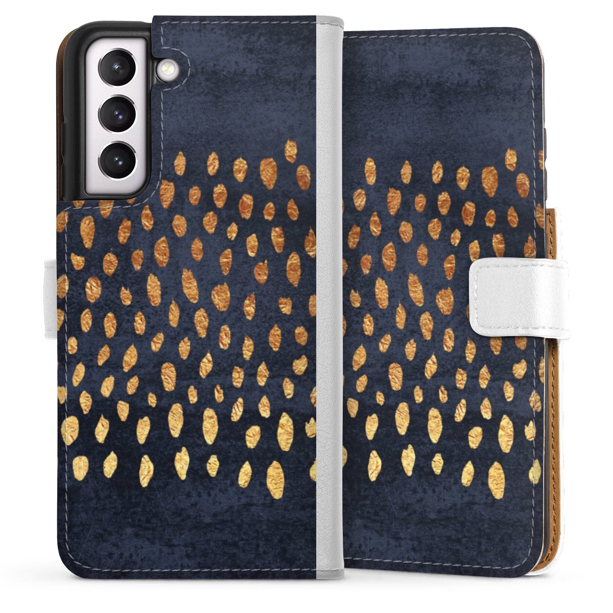 For our Sideflip Case we are using our advanced direct printing technology. The back and frontside are fully printabale, the inside of the phone bag is left unprinted. You can order the phone case without print, printed completely or also with a partial print.