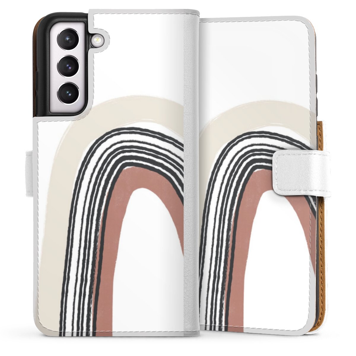 For our Sideflip Case we are using our advanced direct printing technology. The back and frontside are fully printabale, the inside of the phone bag is left unprinted. You can order the phone case without print, printed completely or also with a partial print.