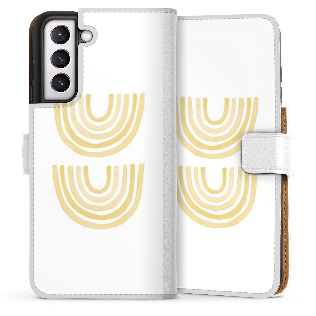 For our Sideflip Case we are using our advanced direct printing technology. The back and frontside are fully printabale, the inside of the phone bag is left unprinted. You can order the phone case without print, printed completely or also with a partial print.