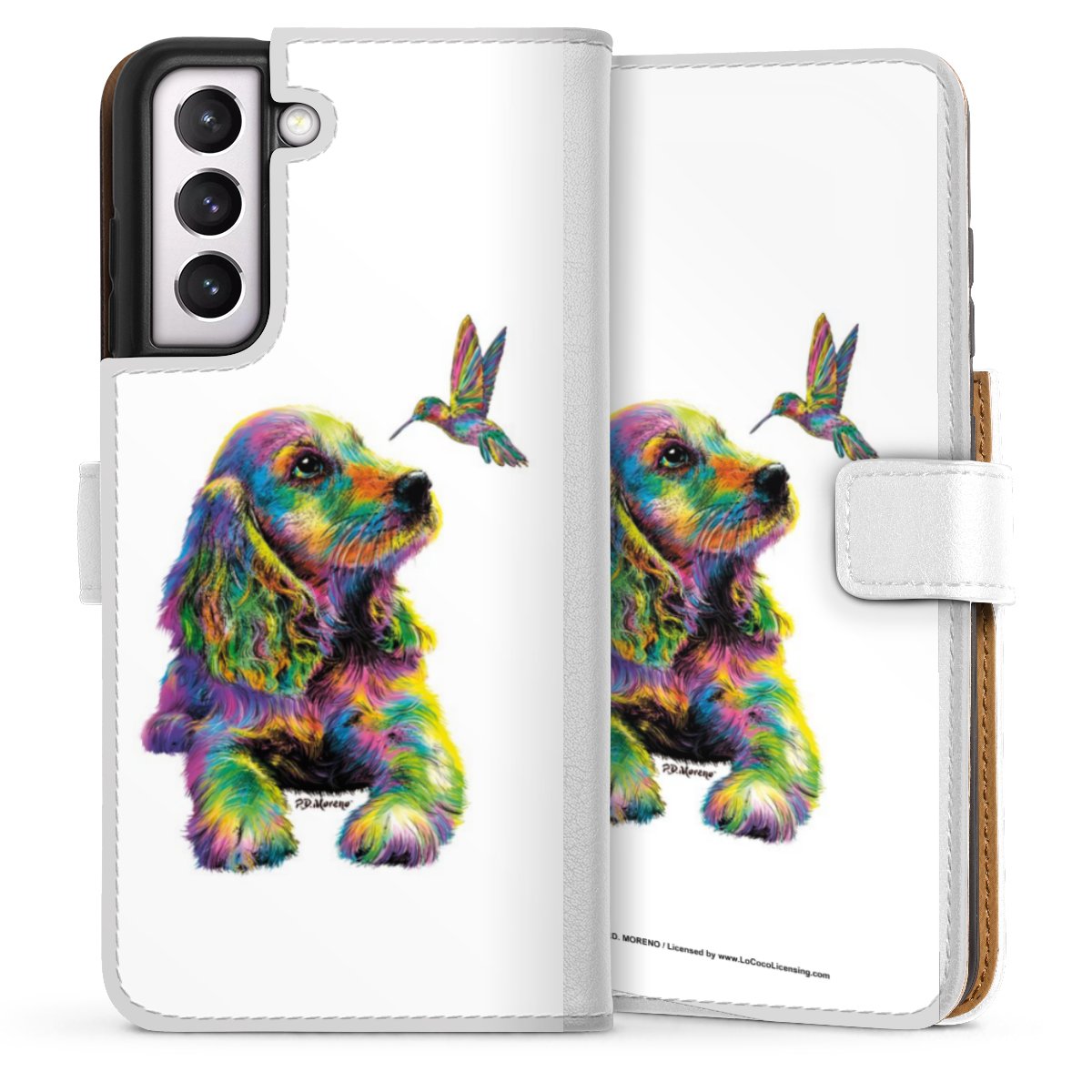 For our Sideflip Case we are using our advanced direct printing technology. The back and frontside are fully printabale, the inside of the phone bag is left unprinted. You can order the phone case without print, printed completely or also with a partial print.