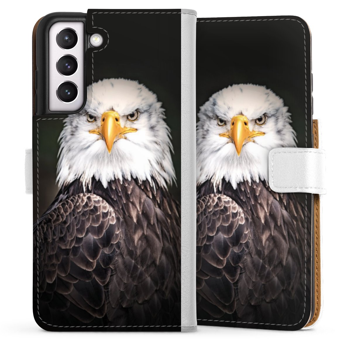 For our Sideflip Case we are using our advanced direct printing technology. The back and frontside are fully printabale, the inside of the phone bag is left unprinted. You can order the phone case without print, printed completely or also with a partial print.