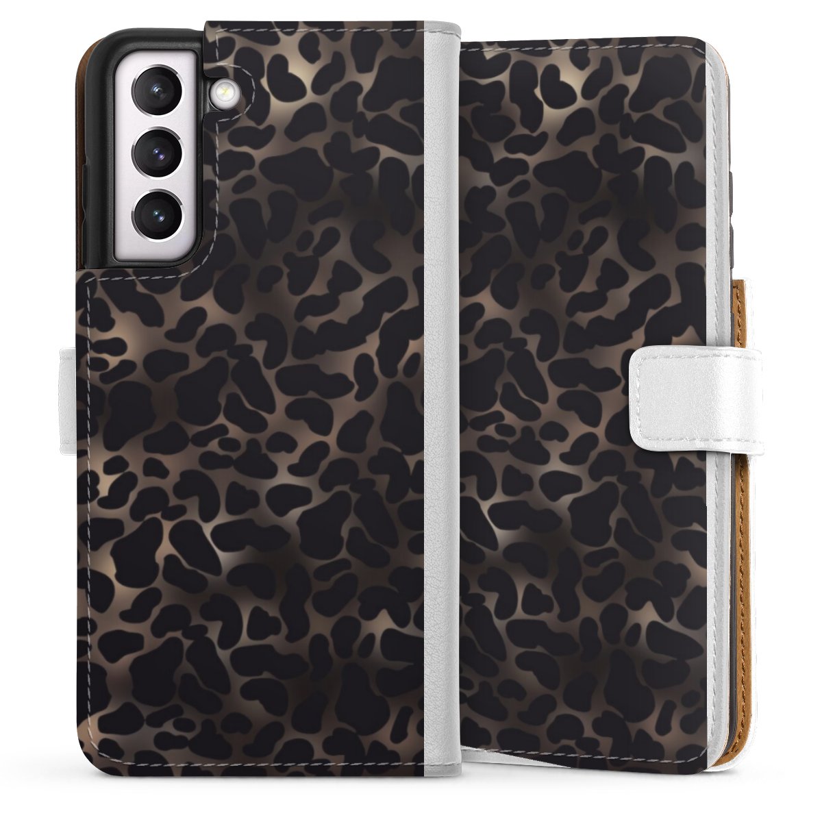 For our Sideflip Case we are using our advanced direct printing technology. The back and frontside are fully printabale, the inside of the phone bag is left unprinted. You can order the phone case without print, printed completely or also with a partial print.