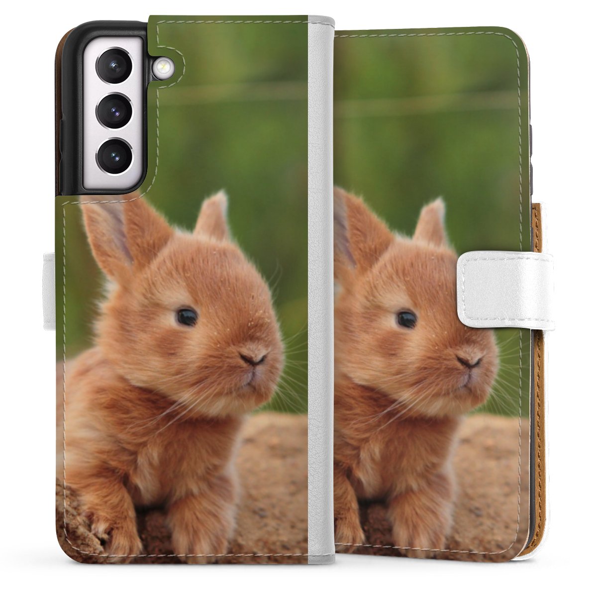 For our Sideflip Case we are using our advanced direct printing technology. The back and frontside are fully printabale, the inside of the phone bag is left unprinted. You can order the phone case without print, printed completely or also with a partial print.
