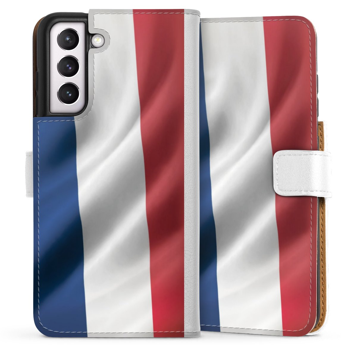 For our Sideflip Case we are using our advanced direct printing technology. The back and frontside are fully printabale, the inside of the phone bag is left unprinted. You can order the phone case without print, printed completely or also with a partial print.