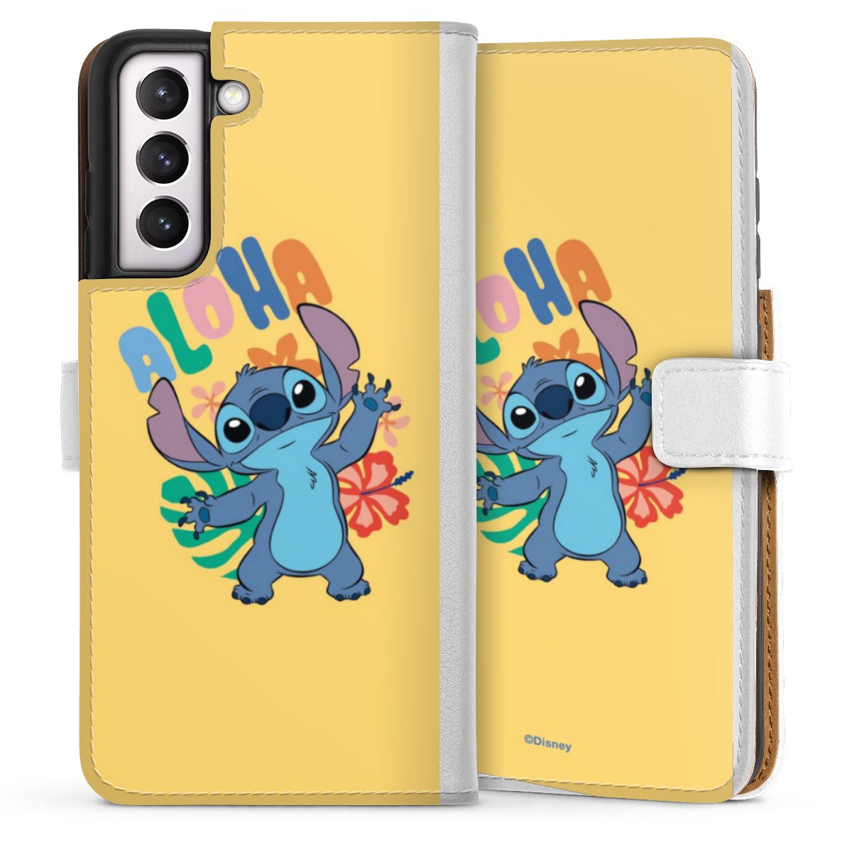 For our Sideflip Case we are using our advanced direct printing technology. The back and frontside are fully printabale, the inside of the phone bag is left unprinted. You can order the phone case without print, printed completely or also with a partial print.