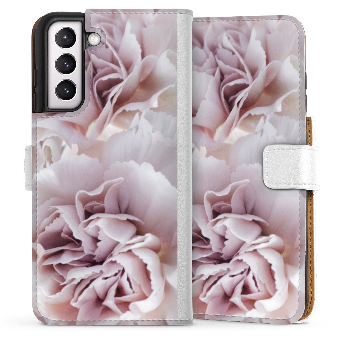 For our Sideflip Case we are using our advanced direct printing technology. The back and frontside are fully printabale, the inside of the phone bag is left unprinted. You can order the phone case without print, printed completely or also with a partial print.