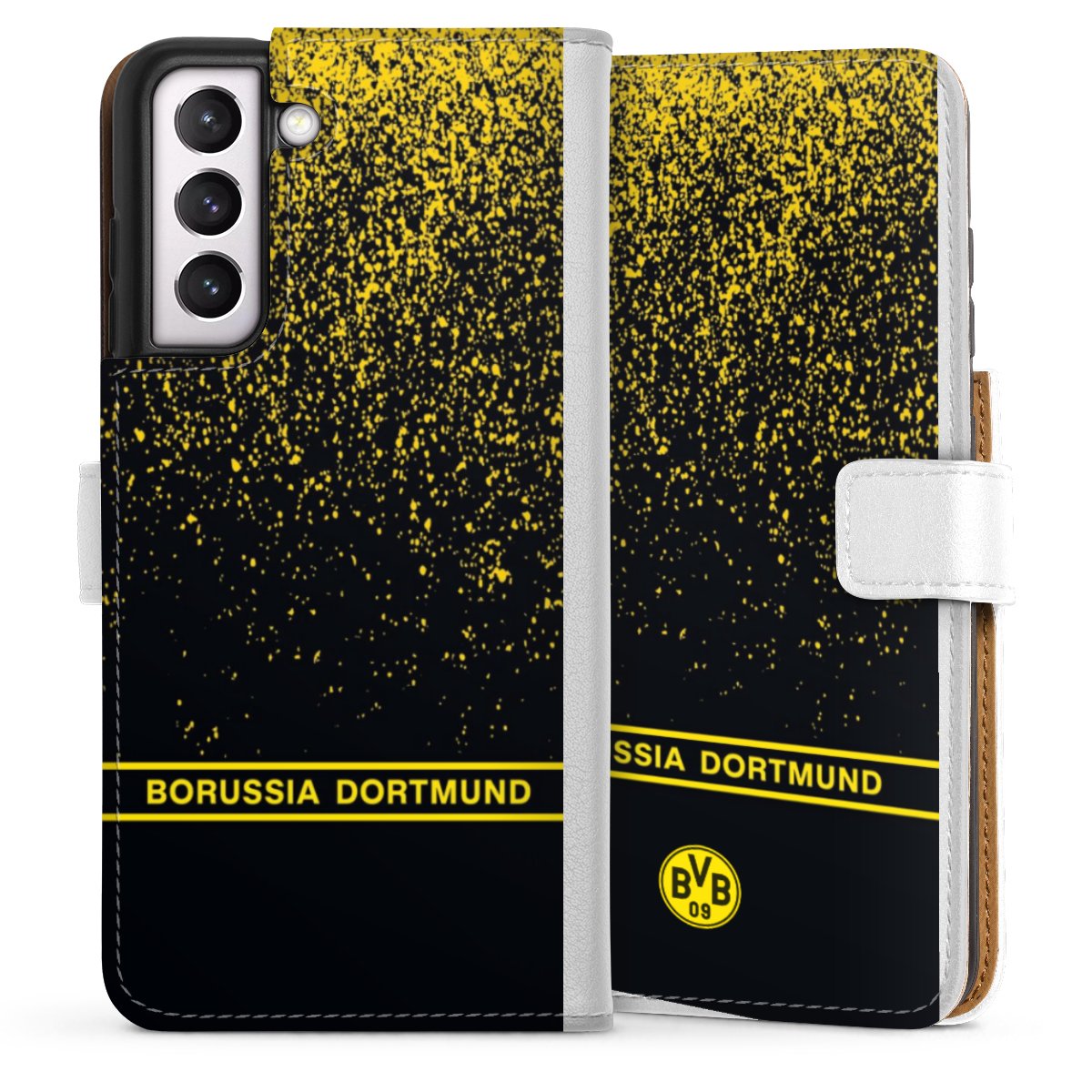 For our Sideflip Case we are using our advanced direct printing technology. The back and frontside are fully printabale, the inside of the phone bag is left unprinted. You can order the phone case without print, printed completely or also with a partial print.
