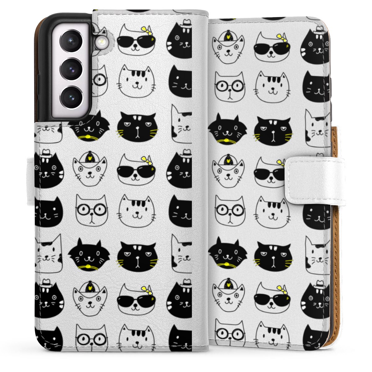For our Sideflip Case we are using our advanced direct printing technology. The back and frontside are fully printabale, the inside of the phone bag is left unprinted. You can order the phone case without print, printed completely or also with a partial print.
