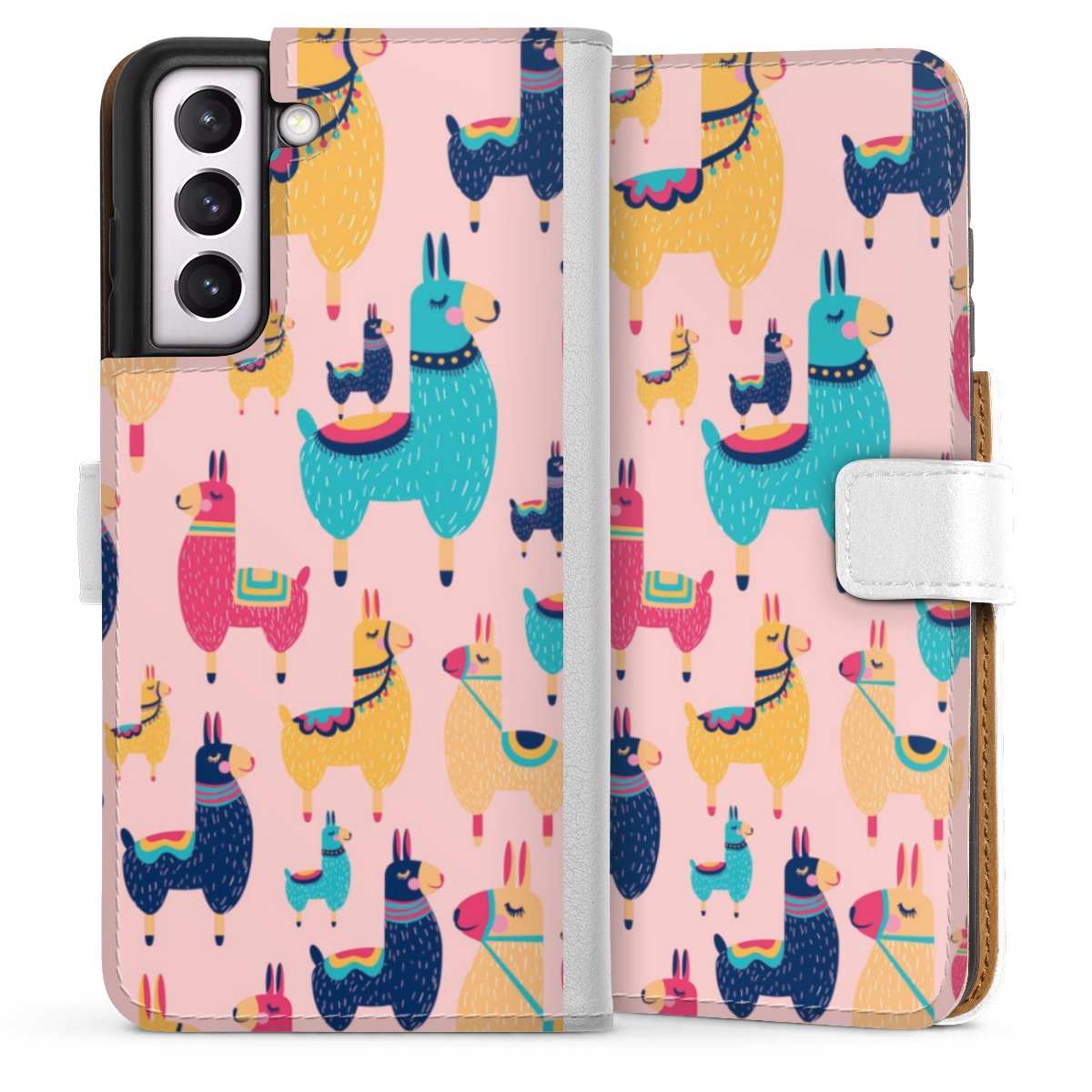 For our Sideflip Case we are using our advanced direct printing technology. The back and frontside are fully printabale, the inside of the phone bag is left unprinted. You can order the phone case without print, printed completely or also with a partial print.
