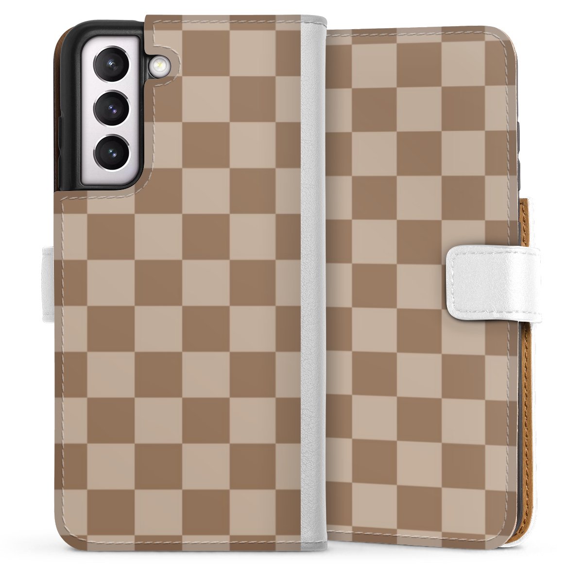For our Sideflip Case we are using our advanced direct printing technology. The back and frontside are fully printabale, the inside of the phone bag is left unprinted. You can order the phone case without print, printed completely or also with a partial print.